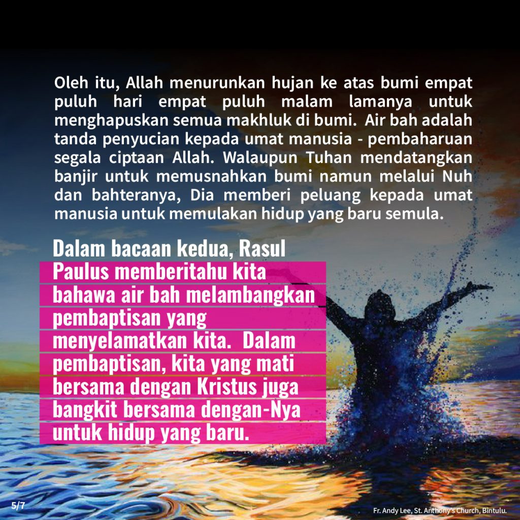Bahasa Malaysia, Reflections Renungan Hari Minggu PRAPASKA KE-1 (21hb FEBRUARI 2021) Posted on 21 February 2021 by Fr. Andy Lee Fr. Andy Lee Refleksyen Hari Minggu Kesatu Musin Lent Tahun B (21hb Februari 2021) 四旬期第一主日(已年)反思 (2021年2月21日)