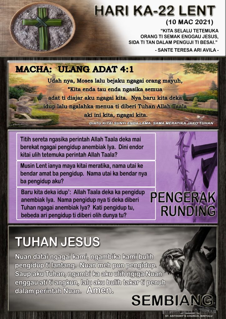 40 Days of Lent, Iban HARI KA-22 LENT (10 MAC 2021) Posted on 10 March 20219 March 2021 by Fr. Andy Lee Fr. Andy Lee HARI KE-22 PRAPASKA (10 MAC 2021) LENT DAY 23 (11th MARCH 2021)