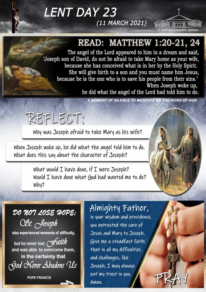 40 Days of Lent, English LENT DAY 23 (11th MARCH 2021) Posted on 11 March 202110 March 2021 by Fr. Andy Lee Fr. Andy Lee HARI KA-22 LENT (10 MAC 2021) HARI KA-23 LENT (11 MAC 2021)