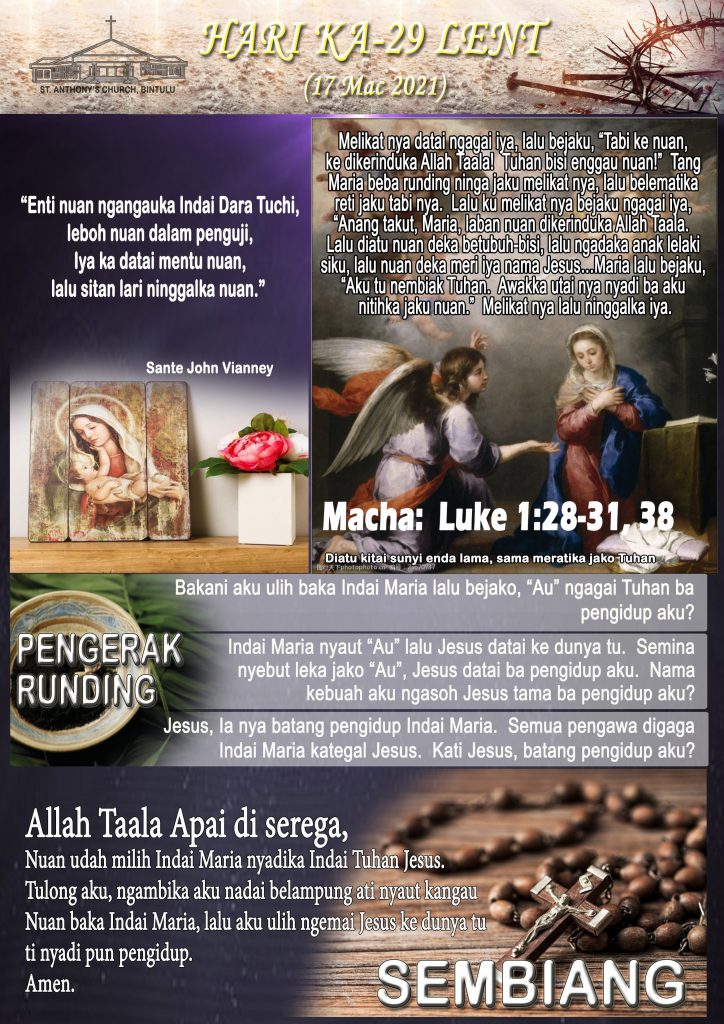 40 Days of Lent, Iban HARI KA-29 LENT (17 MAC 2021) Posted on 17 March 202116 March 2021 by Fr. Andy Lee Fr. Andy Lee LENT DAY 29 (17th MARCH 2021) LENT DAY 30 (18th MARCH 2021)