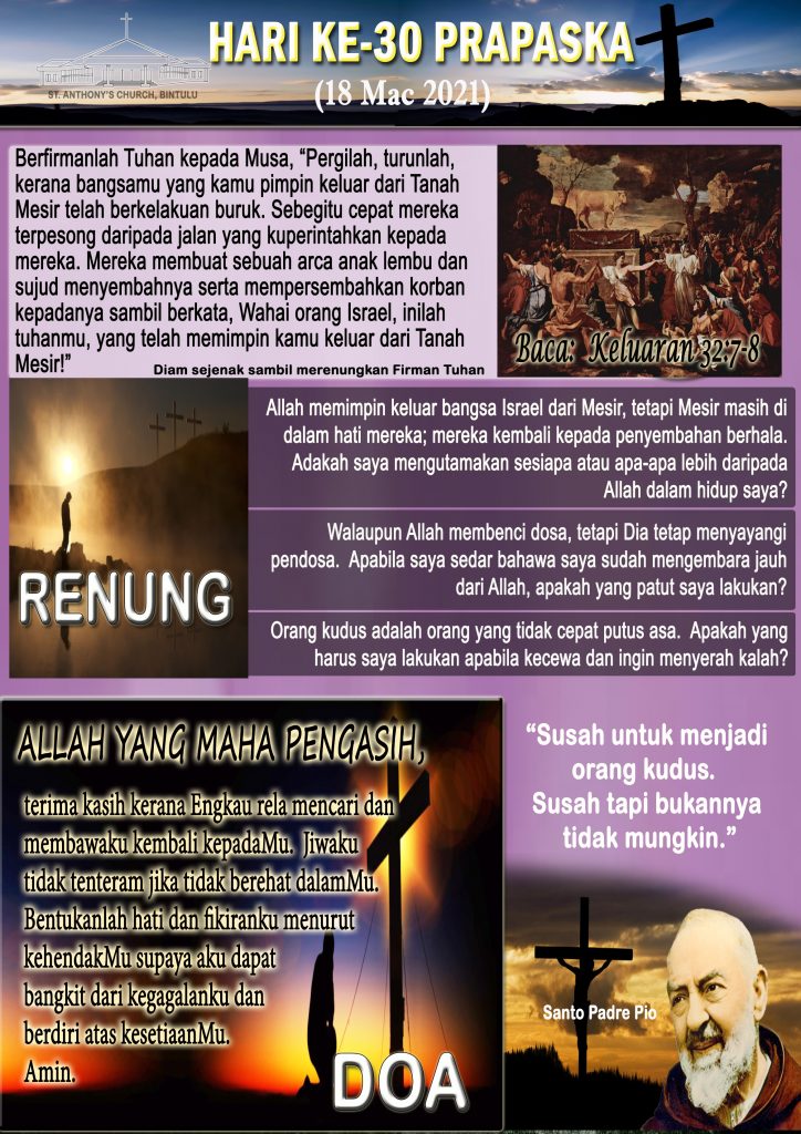 40 Days of Lent, Bahasa Malaysia HARI KE-30 PRAPASKA (18 MAC 2021) Posted on 18 March 202117 March 2021 by Fr. Andy Lee Fr. Andy Lee LENT DAY 30 (18th MARCH 2021) HARI KA-30 LENT (18 MAC 2021)