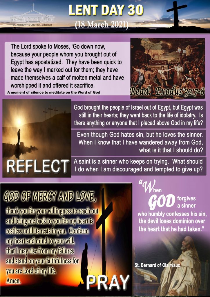 40 Days of Lent, English LENT DAY 30 (18th MARCH 2021) Posted on 18 March 202117 March 2021 by Fr. Andy Lee Fr. Andy Lee HARI KA-29 LENT (17 MAC 2021) HARI KE-30 PRAPASKA (18 MAC 2021)