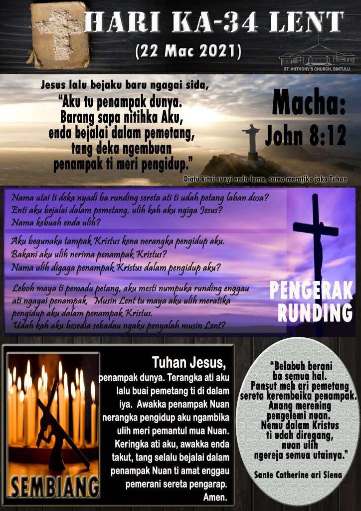 40 Days of Lent, Iban HARI KA-34 LENT (22 MAC 2021) Posted on 22 March 202121 March 2021 by Fr. Andy Lee Fr. Andy Lee LENT DAY 34 (22nd MARCH 2021) HARI KE-34 PRAPASKA (22 MAC 2021)