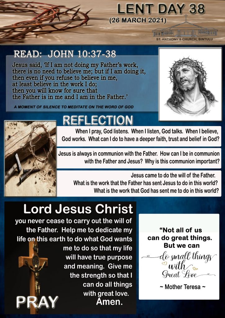 40 Days of Lent, English LENT DAY 38 (26th MARCH 2021) Posted on 25 March 2021 by Fr. Andy Lee Fr. Andy Lee HARI KA-38 LENT (26 MAC 2021) HARI KE-38 PRAPASKA (26 MAC 2021)