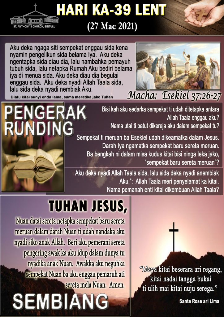 40 Days of Lent, 40 HARI LENT, Iban HARI KA-39 LENT (27 MAC 2021) Posted on 26 March 2021 by Fr. Andy Lee Fr. Andy Lee HARI KE-38 PRAPASKA (26 MAC 2021) LENT DAY 39 (27th MARCH 2021)