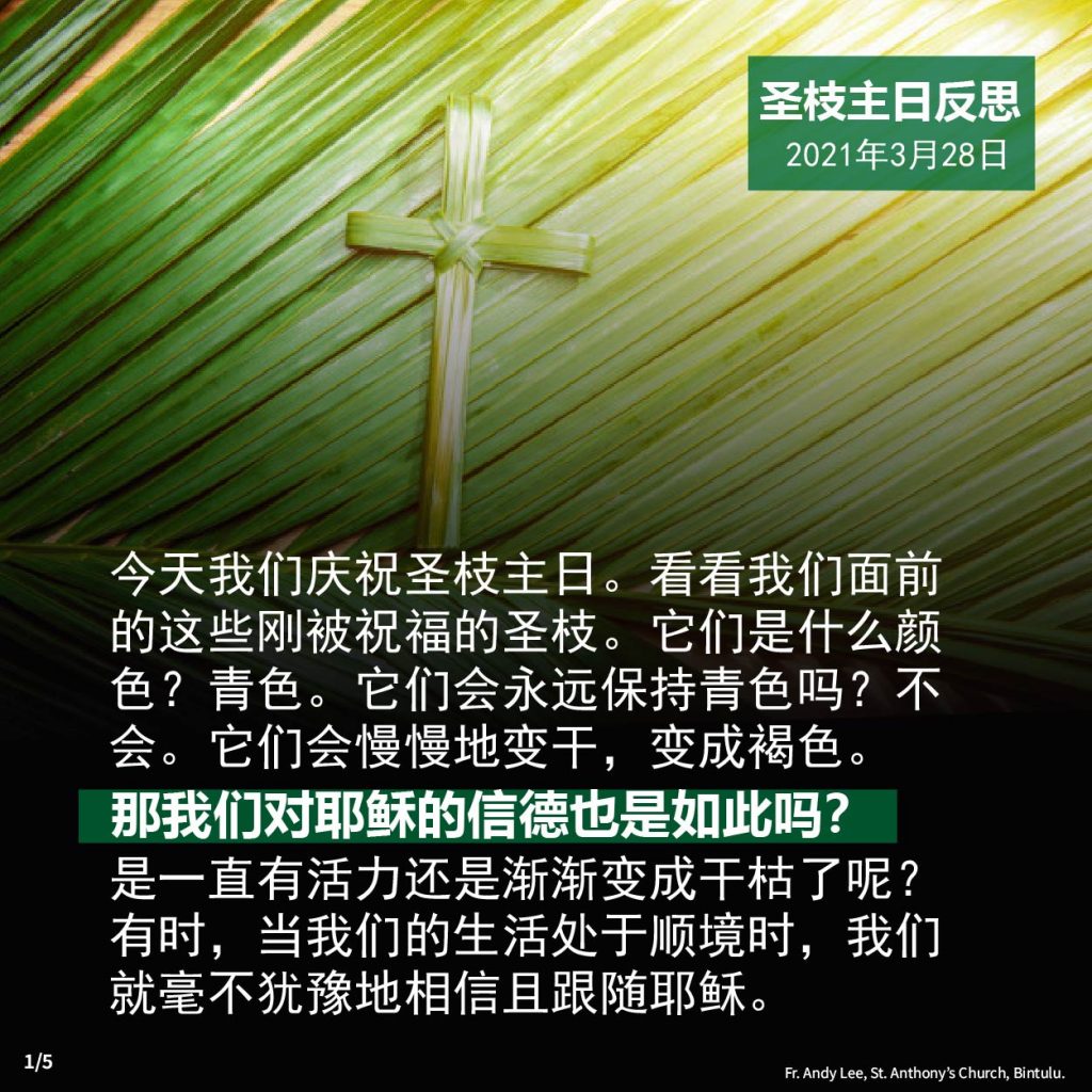 Chinese, Reflections 圣枝主日(已年)反思 (2021年3月28日) Posted on 27 March 2021 by Fr. Andy Lee Fr. Andy Lee NOTIS GEREJA MINGGU PALMA (28 MAC 2021) Refleksyen Hari Minggu Palma Tahun B (28hb Mac 2021)