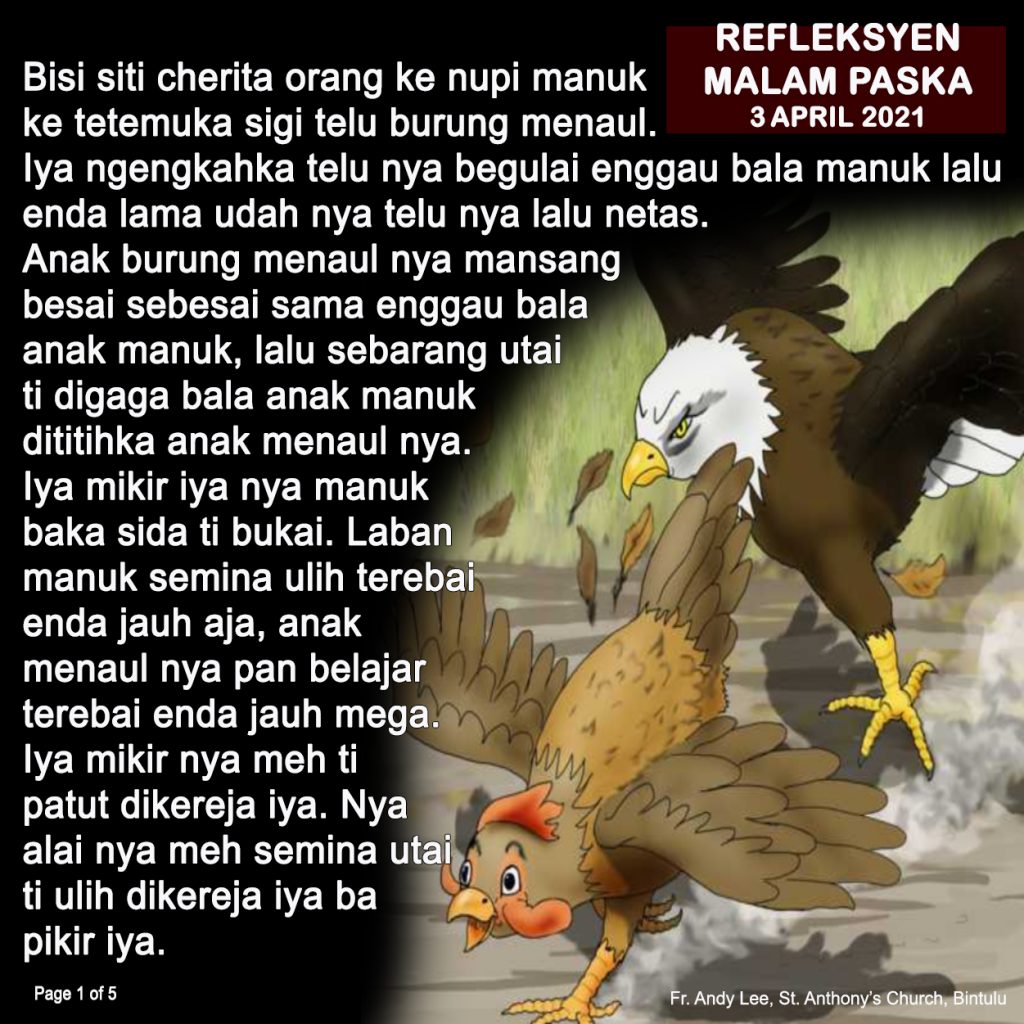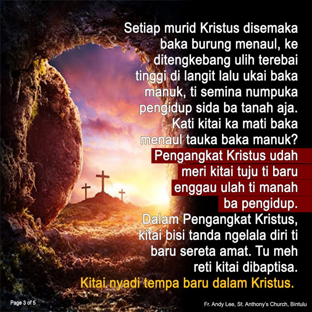 Iban, Reflections Refleksyen Malam Paska Tahun B (3hb April 2021) Posted on 3 April 2021 by Fr. Andy Lee Fr. Andy Lee, Gereja St. Anthony, Bintulu Fr. Andy Lee Renungan untuk Malam Paska (3hb APRIL 2021) 复活前夕(已年)反思 (2021年4月3日)