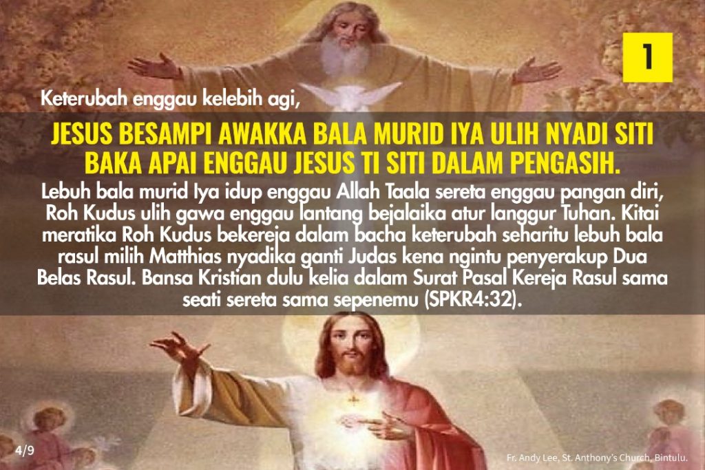 Iban, Reflections Refleksyen Hari Minggu Ke-7 Musim Paska Tahun B (16hb Mei 2021) Posted on 16 May 2021 by Fr. Andy Lee Fr. Andy Lee, Gereja St. Anthony, Bintulu Fr. Andy Lee 复活节第七主日(已年)反思 (2021年5月16日) Reflection on the 7th Sunday of Easter (16th May 2021)