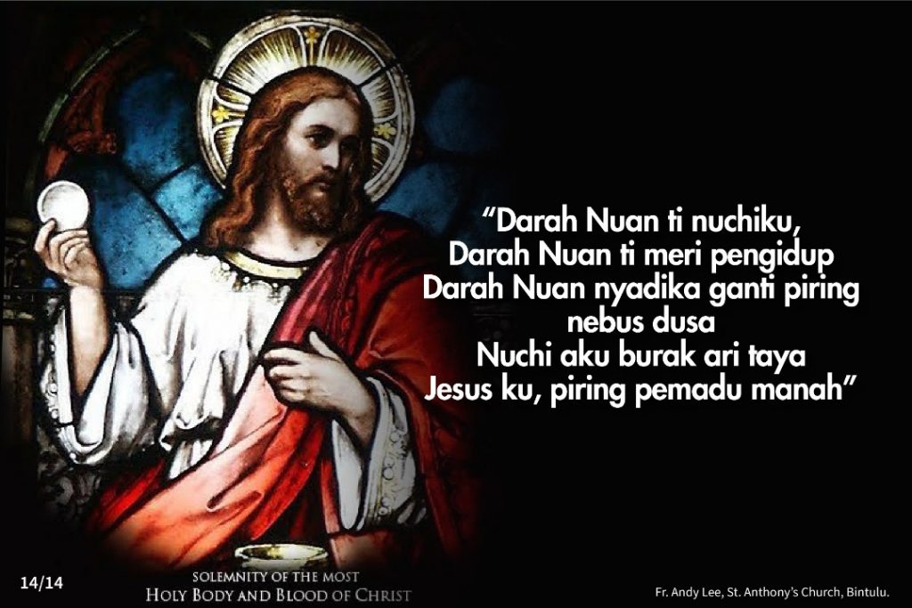 Iban, Reflections Refleksyen Tubuh Enggau Darah Jesus Kristus Tahun B (6hb Jun 2021) Posted on 13 June 2021 by Fr. Andy Lee Fr. Andy Lee, Gereja St. Anthony, Bintulu Fr. Andy Lee Renungan untuk Hari Minggu Tubuh Dan Darah Kristus (6hb JUN 2021) Refleksyen Hari Minggu Selama Ke-11 Tahun B (13hb Jun 2021)