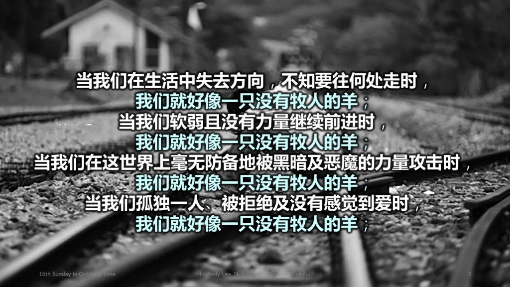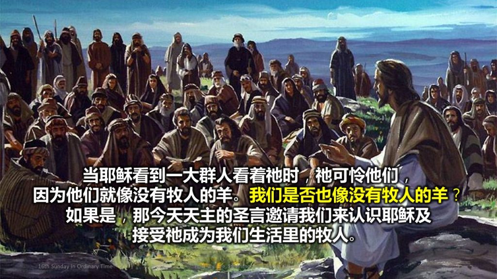 Chinese, Reflections 常年期第十六主日(已年)反思 (2021年7月18日) Posted on 17 July 2021 by Fr. Andy Lee Fr. Andy Lee 常年期第十五主日(已年)反思 (2021年7月11日) Renungan untuk Hari Minggu Biasa Ke-16 Tahun B (18hb Julai 2021)