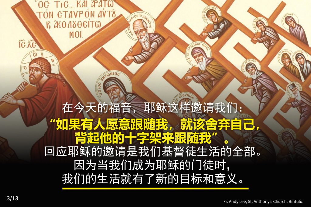 Chinese, Reflections 常年期第二十四主日(已年)反思 (2021年9月12日) Posted on 14 September 202114 September 2021 by Fr. Andy Lee Fr. Andy Lee Reflection on 24th Sunday in Ordinary Time (12nd September 2021) Reflection on 26th Sunday in Ordinary Time (26th September 2021)